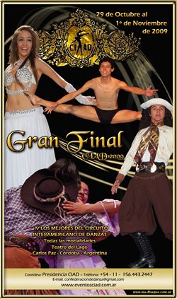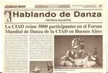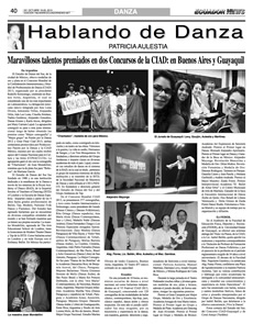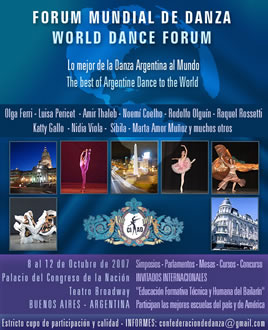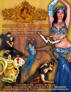 El Primer evento realizado en 1984, el Circuito Latinoamericano de la Danza, proyecto de gira para compañías. Tapa del Programa del I Festival Internacional de Danza en 1986. El II Festival Internacional de Danza ya se consagró en 1987. El Circuito Latinoamericano de la Danza, fue el pionero en el mundo de Festivales Internacionales de todas los géneros y formas de danza. Se inicia en Uruguaiana, Brasil, en 1983, iniciando un movimiento continental y mundial, con mas de dos mil eventos. Los eventos de Corrientes, Argentina con gran nivel, ya van por la XXV Edición y es uno de los más importantes de Latinoamerica. Introdujo los eventos internacionales de danza en Bolivia. Diario de Santa Cruz de la Sierra. Edición del Ecuador News de Nueva York, para la comunidad latina de USA. Forum Mundial con las mejores figuras argentinas del momento: Olga Ferri, Luisa Pericet, Anir Thaleb, Moemí Coelho, Rodolfo Olguín, Raquel Rossetti, Katy Gallo, Nidia Viola, Sibila, Marta Amor MUños e invitados internacionales. Concurso Internacional de Danza Athens 2008, en Grecia, con los ganadores, el Grupo Estímulo de Brasil, bajo al dirección de Berenice Fuhrô Souto. Eventos correntinos que hicieron escuela. Teatro el Circulo de Rosario, Argentina, donde reralizó en 1999, el I Grand Prix de Argentina (Danza Clásica). Estuvieron Raquel Rossetti y Jaime Pinto Riveros. Forum Mundial 2007 en el Honorable Senado de la Nación, Buenos Aires. Eventos "Punta en Danza", en Punta del Este y Maldonado desde 1993. "Los Mejores de Argentina",en el 2005 en el Teatro Coliseo de Buenos Aires. En la foto Emanuel Amuchastegui Amir Thaleb y Rodolfo Solmoirago Rodolfo Solmoirago con Hernán Piquin y Karina Olmedo. Rodolfo Solmoirago en el Senado de la Nación Argentina en 2009. Ecuador News de New York. Poster de Athens 2008. La Lic. Marta Amor Muñoz, Jurado Internacional, atras el Prof. Luis Stivala con el Prof. Rodolfo Solmoirago. Poster de Bariloche en Danza, organizado en el Hotel Llao Llao. Algunos de los participantes del XXXVII Congreso Internacional de Danza en La Cumbre, Córdoba, Argentina. Febrero 2011. Apertura de la Expo Danza Internacional en Corrientes, Argentina - Club Boca Unidos, Costanera Sur. Mayo de 2011 Stand de CIAD en el Electra Palece Hotel de Atenas, Grecia, con Virginia Rosero, Ecuador y Patricia Aulestia de México. Con el Ministro de Cultura del Paraguay, Katty Ortega y Reina Menchaca. Asunción, Paraguay. Grand Prix de Danza Clásica "100 Años". Teatro Oficial Juan de Vera, Corrientes, Argentina, Julio 2013. La Danza conmemora los 100 años de Construcción del Teatro Juan de Vera de Corrientes. Victoria Wolf, del Instituto de Arte del Teatro Colón de Buenos Aires, en el Grand Prix correntino Mundial CIAD, se realiza todos los años en la Ciudad de Buenos Aires, Argentina en el mes de Septiembre. El Prof. Rodolfo Solmoirago creador de los Concursos Evaluativos Multidisciplinarios, no competitivos, primeros en el mundo. IMAGENES DEL FORUM MUNDIAL CIAD 2017 |