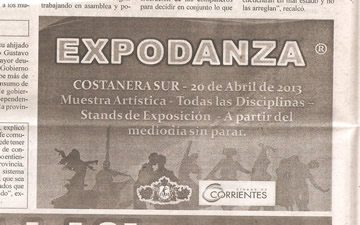 y Cultura. Uruguaiana, Rio Grande do Sul, Brasil : • I y II Seminario Internacional de Danza. Patrocinado por la Secretaria Municipal de Educación y Cultura. Declarado de Interés Municipal Decreto Nro.309/89. Salón Auditorio del Colegio del Huerto. Uruguaiana, Rio Grande do Sul, Brasil. Agosto de 1989 y de 1990. • I y II Congreso Latinoamericano de la Enseñanza de la Danza. Patrocinado por la Secretaria Municipal de Educación y Cultura. Salón Auditorio Municipalidad. Uruguaiana, Rio Grande do Sul, Brasil. Noviembre de 1989 y de 1990. • I Concurso Latinoamericano de Danza Paraguay Danza 1991. Auspiciada por la Asociación Paraguaya de Profesores de Danza. Centro Paraguayo - Japonés. Asunción, Paraguay. Julio de 1991. • I Encuentro Latinoamericano de Danza en Morón. Auspicia Dirección de Cultura. Teatro Municipal. Morón, Buenos Aires, Argentina. Mayo de 1991. • I Certamen Latinoamericano de Danza Infantil. Auspicio Dirección de Cultura. Teatro Municipal “3 de Febrero”. Santa Fe, Argentina. Agosto de 1991. • I, II, III, IV, V y VI Festival de Integración de la Danza Paso de los Libres - Uruguaiana. Sala “Atilio Devoto” de la Biblioteca Popular Sarmiento. Auspicia Dirección Municipal de Cultura. Paso de los Libres, Corrientes, Argentina. Octubre de 1991, Diciembre de 1991, Mayo de 1992, Mayo de 1993, Junio de 1993 y Julio de 1993. • I Concurso Latinoamericano de Ballet y Danza en el Auditorio “Dante Barone” de la Asamblea Legislativa del Estado. Porto Alegre, Rio Grande do Sul, Brasil. Noviembre de 1991. • I Jornada de Integración Cultural de Frontera. Frente Biblioteca Popular Sarmiento. Auspicia Subsecretaria de Cultura de la Provincia. Paso de los Libres, Corrientes, Argentina. Diciembre de 1992. •