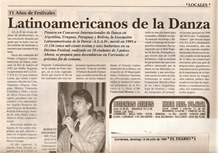 Argentina. • VIII Festival Latinoamericano de Danza en Punta del Este, Uruguay. Auspicios de : Ministerio de Educación y Cultura, Ministerio de Turismo. Centro del Espectáculo. Punta del Este, Uruguay. Diciembre de 1993. •